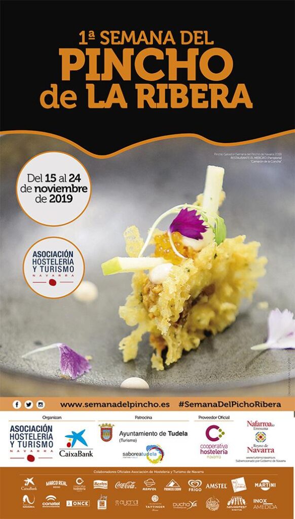 La Semana del Pincho de la Ribera, organizada por la Asociación de Hostelería y Turismo de Navarra, cuenta con el patrocinio del Ayuntamiento de Tudela, en su primera edición comienza este viernes y tendrá lugar del 15 al 24 de noviembre 2019.
