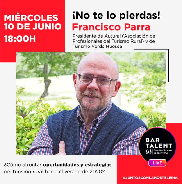 El miércoles 10 de junio a las 18:00 horas tendremos la masterclass de Francisco Parra, Presidente de Autural (Asociación de Profesionales del Turismo Rural) y de Turismo Verde Huesca.
