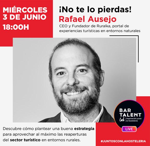 El miércoles 3 de junio a las 18:00 horas tendremos la masterclass de Rafael Ausejo, CEO y Fundador de Ruralka, portal de experiencias turísticas en entornos naturales.