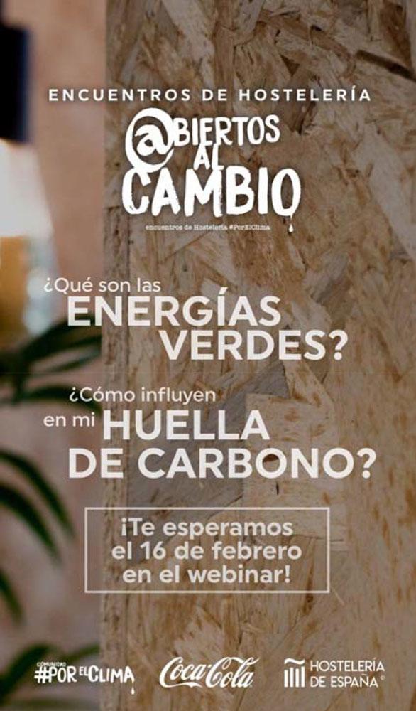 Madrid, 9 de febrero de 2021.- El sector hostelero es cada vez más consciente de que su supervivencia pasa por un cambio de valores y actitudes hacia una recuperación verde. Por ello, son cada vez más los establecimientos que implantan acciones para reducir y compensar el impacto de su actividad en el medio ambiente. A pesar de ello, la carrera hacia la descarbonización sigue generando muchas dudas. Con el objetivo de esclarecerlas, la plataforma Hostelería #PorElClima, desarrollada por Ecodes con la colaboración estratégica y el impulso de Coca-Cola y el apoyo de Hostelería de España, pone en marcha un nuevo programa formativo enmarcado en su compromiso de ayudar al sector a rebajar sus emisiones de gases de efecto invernadero. De este modo, bajo el epígrafe @abiertos al cambio, celebrará 8 encuentros a lo largo de 2021 en los que los asistentes podrán aprender sobre diferentes temas vinculados con la acción climática: las energías verdes, la gestión de los residuos, el desperdicio alimentario, menaje sostenible, huella de carbono o estrategias políticas en torno a la descarbonización en España.