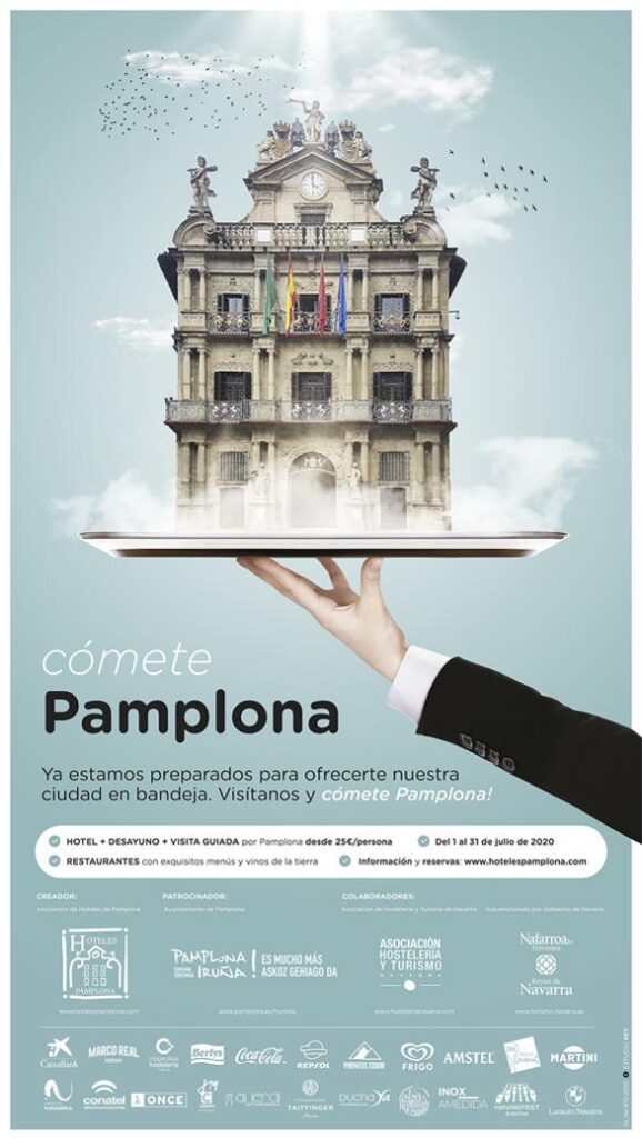 La Asociación de Hoteles de Pamplona, con el gran apoyo del Ayuntamiento de Pamplona como patrocinador de la campaña, la colaboración de la Asociación de Hostelería y Turismo de Navarra con la adhesión de sus restaurantes y la ayuda del Departamento de Turismo del Gobierno de Navarra lanzan la campaña Cómete Pamplona del 1 al 31 de julio de 2020. Se trata de una iniciativa turística que busca promocionar nuestro destino Pamplona ante el turista nacional e internacional (sur de Francia) a través de una propuesta de valor fundamentada en nuestra mejor gastronomía (restaurantes), nuestras sobresalientes propuestas de alojamiento (hoteles) y visitas guiadas como activo complementario.
