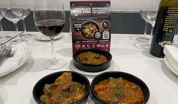 - Las cazuelicas se presentan acompañadas y maridadas con un vino de la D.O. Navarra