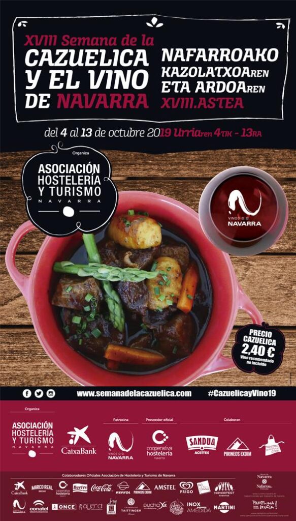 - Se celebra del 4 al 13 de octubre de 2019. Las cazuelicas se presentan acompañadas y maridadas con un vino de la D.O. Navarra