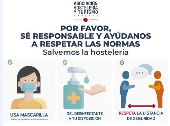 Desde la Asociación de Hostelería y Turismo de Navarra queremos mandar un mensaje de agradecimiento a nuestros hosteleros navarros por cumplir al pie de la letra las medidas de seguridad e higiene anti Covid marcadas por las autoridades. Asimismo agradecemos a todos los clientes por aceptarlas en un claro ejemplo de solidaridad y empatía con el sector y con el conjunto de la sociedad. Entre todos, seguimos cuidándonos para levantar la hostelería.