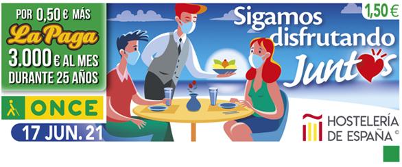 La ONCE dedica su cupón del jueves, 17 de junio, al sector de la hostelería, uno de los más afectados por el parón económico provocado por el coronavirus. Cinco millones y medio de cupones difundirán la importante labor de este sector por toda España.
