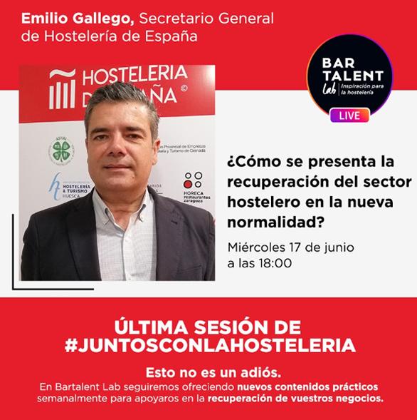 Hoy miércoles 17 de junio a las 18:00 horas tendremos la masterclass de Emilio Gallego, Secretario General de Hostelería de España.