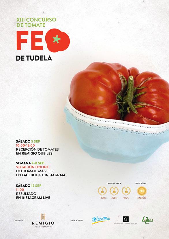 Un año os anunciamos una nueva edición del Concurso el Feo de Tudela. Un merecido homenaje al tomate de nuestra tierra, organizado por el Hostal Restaurante Remigio y con el patrocinio de Inurrieta, Jose Luis Arnedo y Joyería Lozano. A pesar de las actuales circunstancias, se vuelve a celebrar este popular certamen, con algunas variaciones en su dinámica pero sin perder la esencia del evento.
