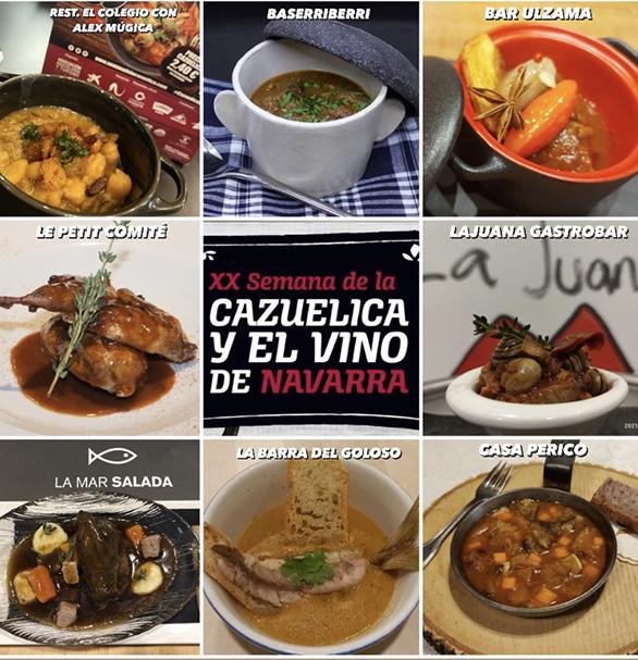 Del 1 al 10 del presente mes de octubre se ha celebrado la XX Semana de la Cazuelica y su Maridaje con el Vino D.O. Navarra, organizada por la Asociación de Hostelería y Turismo de Navarra, está patrocinada por el Consejo Regulador de la Denominación de Origen de Navarra, el proveedor oficial es la Cooperativa de Hostelería y cuenta con la colaboración de Caixa Bank, Aceites Sandúa, Pirineos Exdim, Cpaen-Navarra Ecológica, Asociación de Celíacos de Navarra, el Departamento de Turismo del Gobierno de Navarra y el Ayuntamiento de Pamplona.